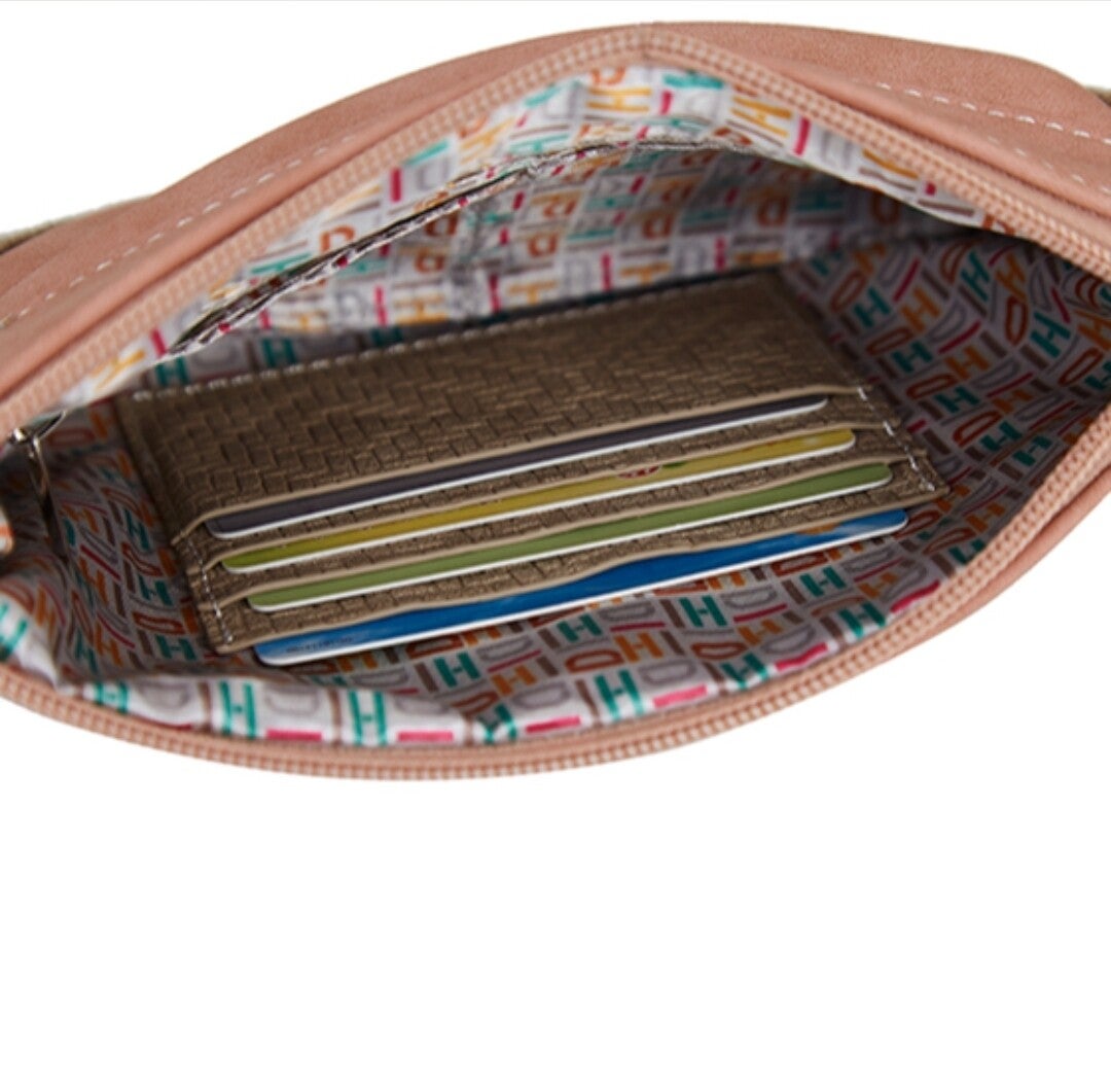 De binnenkant is handig ingedeeld met een open vak, een ritsvak en vier vakjes voor je creditcards, waardoor de Melody tevens als portemonnee fungeert. Aan de achterzijde zit een extra ritsvak voor bijvoorbeeld je sleutels. De tas biedt voldoende ruimte voor je mobiele telefoon en andere essentials.