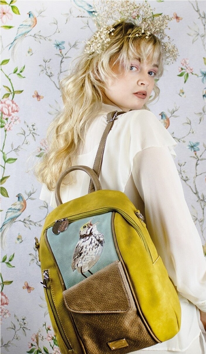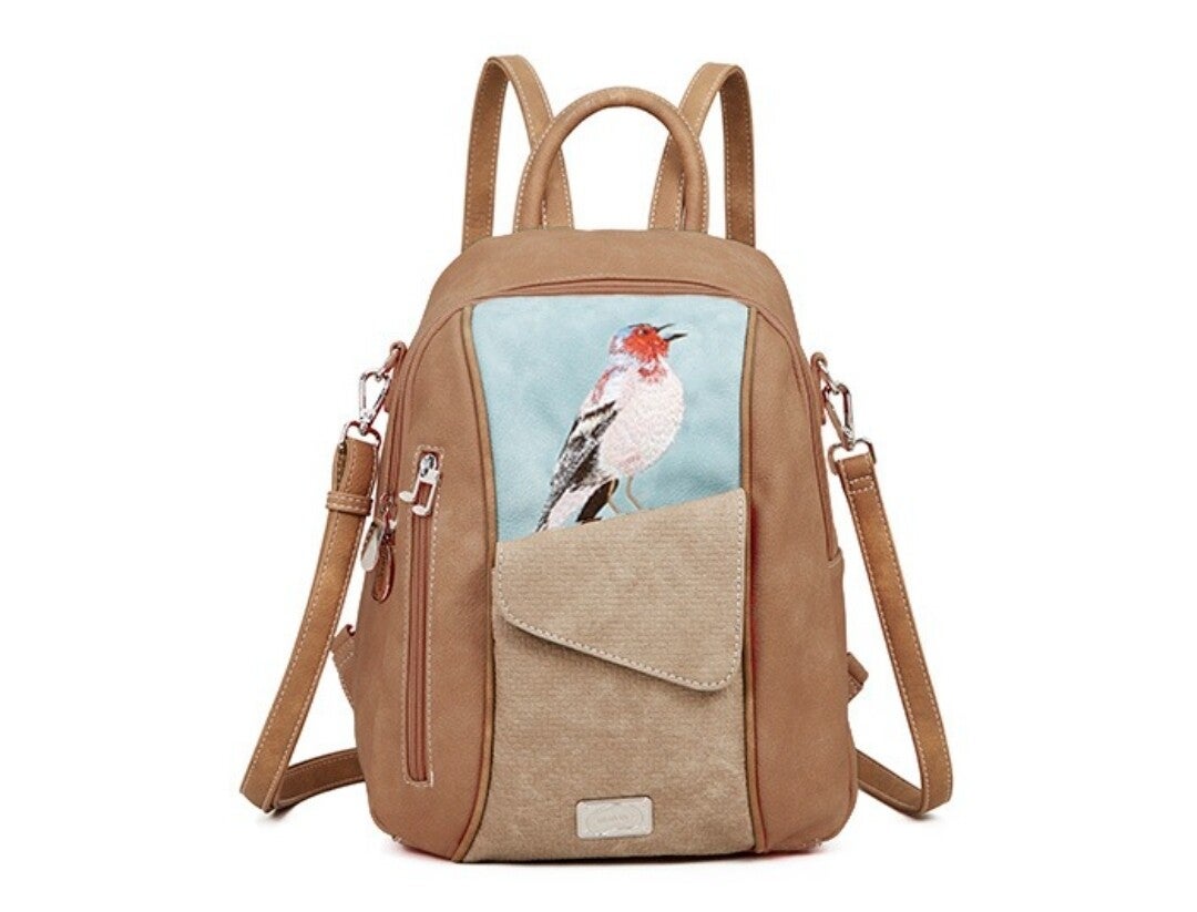 - Vogel print verwerkt in het vegan leer