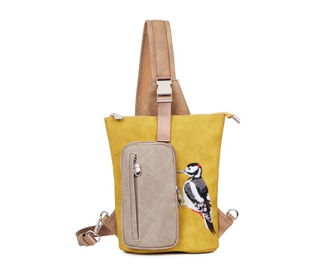 De Drummer is een leuk rugzak van het merk Hi-di-hi. Wat meteen opvalt aan deze tas is het gebruik van de prachtige kleuren wat de tas een trendy en unieke uitstraling geeft. Deze prachtige tas is gemaakt van mooi vegan leer, het vegan leer ziet er prachtig uit en heeft een fijne feel. Het vegan leer materiaal wordt door Hi-di-hi zelf geproduceerd, hierdoor weet Hi-di-hi zeker dat geen vervuiling optreedt of bepaalde giffen worden gebruikt. Op het vegan leer zitten vogel print verwerkt op de voorzijde.