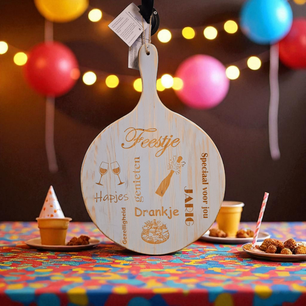 Mooie, grote, ronde borrelplank van duurzaam hout.