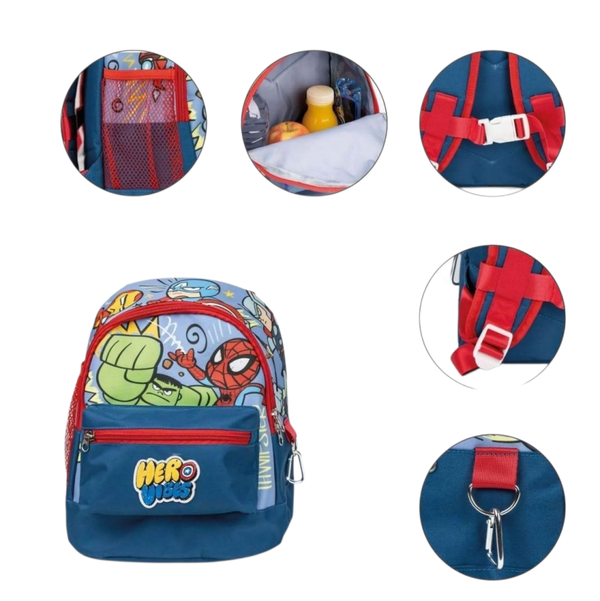 Kinder rugzak met Avengers ontwerp, ideaal voor dagelijks gebruik en schoolactiviteiten • Afmetingen: 23 cm breed, 27 cm hoog en 15 cm diep • Gemaakt van polyester, een sterk en duurzaam materiaal • Voorzien van meerdere vakken en zakken om spullen te organiseren • Inclusief metalen karabijnhaak om accessoires op te hangen • Verstelbare schouderbanden en een borstband voor extra comfort en aanpassing • Origineel en kleurrijk ontwerp, geïnspireerd op de superhelden van Marvel • Product ontworpen in Spanje met materialen van hoge kwaliteit • Perfect om de kleintjes te vergezellen bij hun dagelijkse avonturen