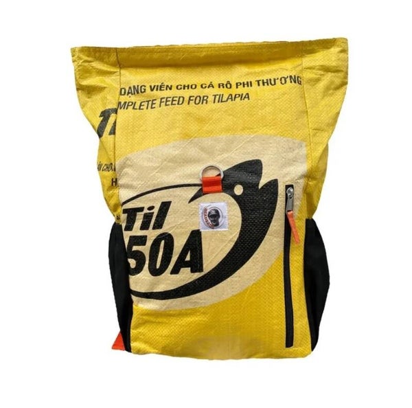 100 procent Fair Trade (gecertificeerd door de World Fair Trade Organization), veganistisch en duurzaam dankzij upcycling, gemaakt van gerecycled rijstzakmateriaal.