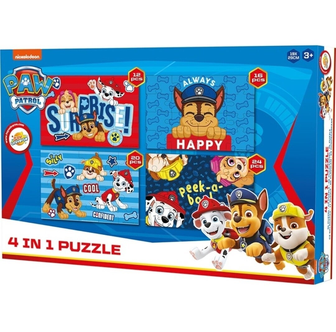 4 in 1 puzzels van de serie Paw Patrol en Peppa Pig.