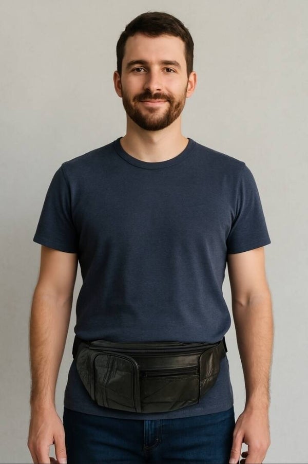 Stijlvolle leren heuptas met drie praktische vakken. Deze tas is ideaal voor het veilig opbergen van persoonlijke spullen tijdens reizen, festivals of dagelijks gebruik. De verstelbare heupband heeft een lengte van 85 tot 110 cm, waardoor de tas comfortabel te dragen is.