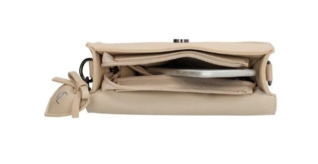 Binnenin biedt de tas ruimte aan een telefoonvak en een klein ritsvakje – perfect voor je essentials. Aan de achterkant zit een extra ritsvak, zodat je snel bij belangrijke items kunt.