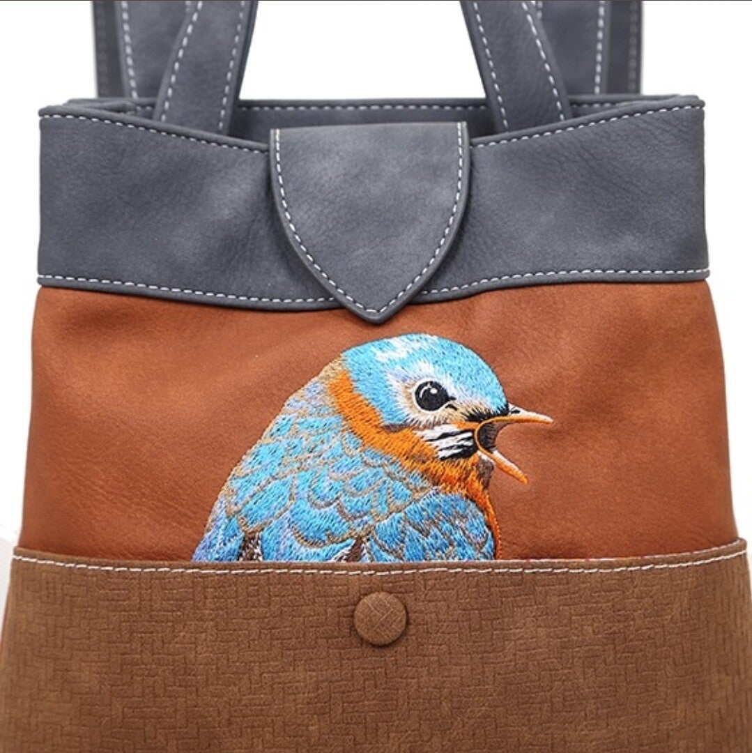 Met de Song Song Blue tas van Hi-di-hi haal je gegarandeerd een vrolijke en praktische tas in huis. Het prachtig geborduurde blauwborstje zingt zijn vrolijke lied terwijl je deze tas comfortabel aan je schouder draagt of moeiteloos transformeert in een rugzak door simpelweg aan de schouderband te trekken. Ideaal wanneer je het gewicht wilt verdelen of op de fiets naar huis gaat na een dagje stad.