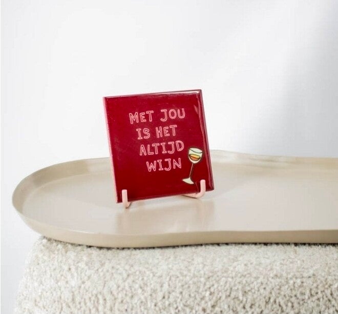 Zet het keramieken tegeltje van 10,5x10,5x0,5cm op een plankje of geef ze een mooi plekje op je bureau. Toch liever aan de wand hangen? Onze tegeltjes zijn voorzien van een handige ophanghaak aan de achterkant. Je kunt ze eenvoudig aan een spijker of schroefje hangen.