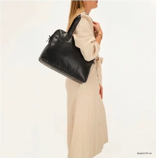 De tas beschikt over twee ruime hoofdvakken met ritssluiting. In het ene vak zit een gevoerd laptopvak geschikt voor laptops tot 13,3 inch, terwijl het andere vak voorzien is van een handig ritsvak voor accessoires of documenten. Aan de achterkant bevindt zich een klein vakje voor spullen die je snel bij de hand wilt hebben. De tas is uitgerust met twee stevige handvatten en een verstelbare, afneembare schouderband voor optimaal draagcomfort.