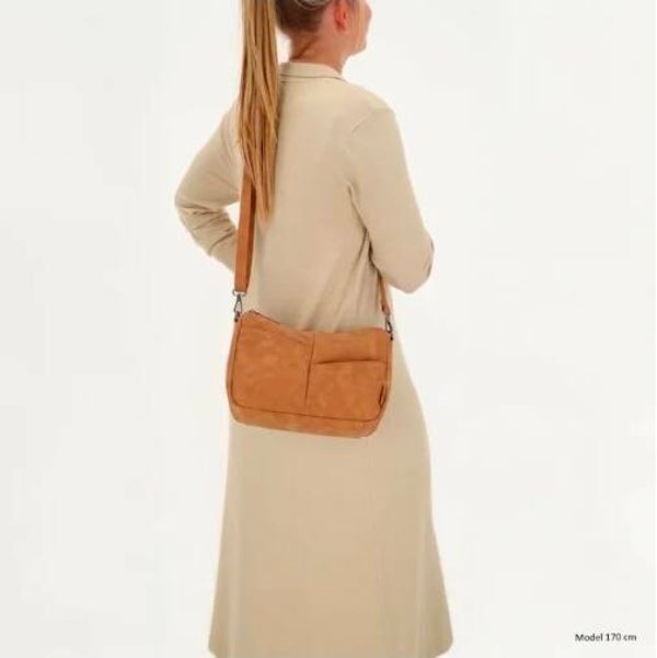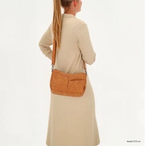 De tas is voorzien van een korte schouderband die afneembaar is, maar niet verstelbaar. Daarnaast wordt er een lange, verstelbare en afneembare schouderband meegeleverd, zodat je de tas ook comfortabel crossbody kunt dragen.