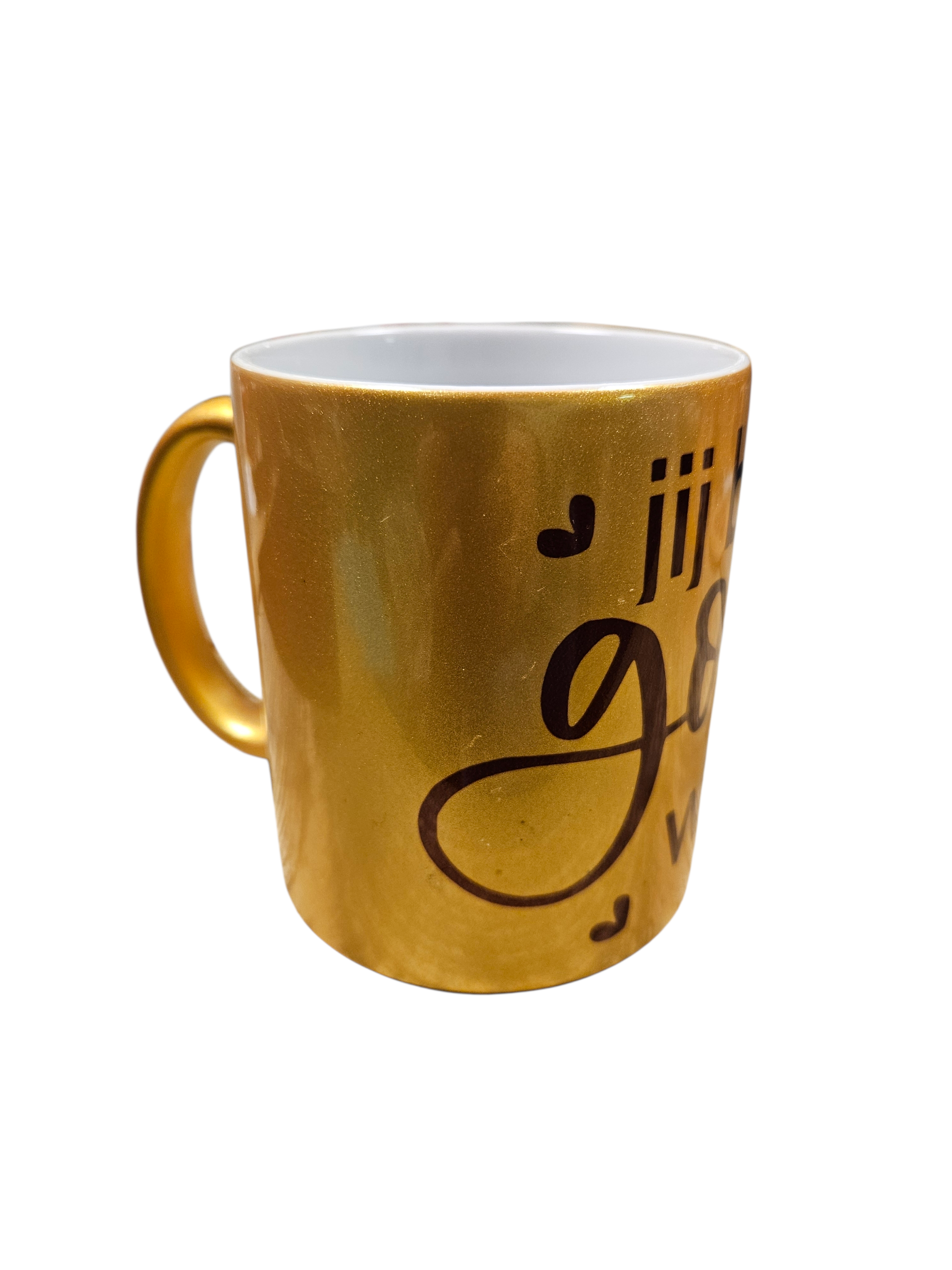 Grote goudkleurige mok, inhoud 330 ml.