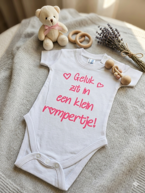 Katoenen romper in de maat 6 maanden, met leuke opdruk.